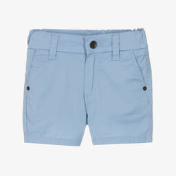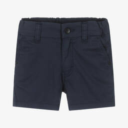 Dark beige chino shorts for little boys by BOSS, made in soft cotton twill with added stretch for comfort. With a useful adjustable waist, these classic shorts have four pockets and a striped tab on the back. They fasten easily with a zip, hook and eye.