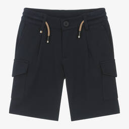 Boys beige viscose cargo shorts by BOSS offer a stylish yet practical choice for warm weather. Made from a soft viscose-blend jersey, these shorts feature a branded button and zip fastening, signature tricolour detailing, and a comfortable elasticated waist. The design includes flap pockets on the sides, slanted pockets on the front, and buttoned pockets on the back, making them both fashionable and functional. Limited quantities available.