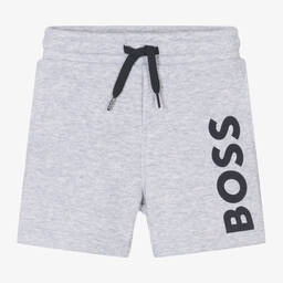 Boys blue jersey logo shorts by BOSS are crafted from comfortable sweatshirt jersey, featuring a bold white logo on one leg. The shorts have a drawstring waistband for a secure fit and handy concealed side pockets. Perfect for casual wear, these shorts offer both style and practicality. Limited quantities available, last chance to buy.