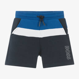 Boys grey cotton shorts by BOSS are made from a soft cotton blend jersey. These casual yet sporty shorts feature panelled stripes in blue and white, an outline logo on one leg, and front pockets. The comfortable drawstring waist ensures a perfect fit. Limited quantities available, so it's your last chance to buy these stylish shorts for the little one.