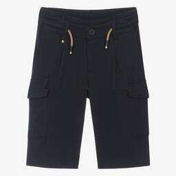 Teen boys beige cargo shorts by BOSS are designed with a cool cargo style and feature plenty of pockets for a casual look. With an elasticated drawstring waist and signature striped end caps, these shorts offer a subtle branded touch. Crafted from a soft mid-weight viscose blend, they are Bermuda length and fasten with a zip and button on the front. Limited quantities available, so it's your last chance to buy these stylish and practical shorts.