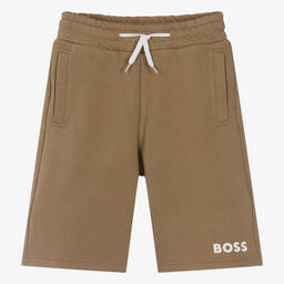Black cotton shorts for teen boys by German brand BOSS, instantly recognisable with a large white logo print on the leg. Great for laid-back looks, these casual shorts have white and grey panels on one leg and jetted pockets for storing essentials. They are made in soft sweatshirt jersey with a comfortable, drawstring waist.