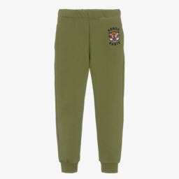 Boys green casual trousers by KENZO KIDS feature the signature tiger logo, adding a distinctive touch to everyday wear. Crafted for comfort and style, these joggers have an elasticated waistband and ribbed cuffs, ensuring a snug fit. The soft fabric provides warmth, making them ideal for the cooler autumn and winter months. Perfect for active days or relaxed lounging, they are a versatile addition to any wardrobe. Limited quantities are available, so secure a pair today.