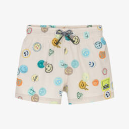 Boys green ocean surfer swim shorts by Molo are crafted from lightweight, recycled polyester for a smooth feel. These shorts feature a lively print of surfers riding the waves, with a comfortable drawstring elastic waistband for a secure fit and a soft mesh lining for added comfort. Perfect for beach days or poolside adventures, these swim shorts offer protection and style. Limited quantities available, ensuring a unique addition to any young adventurer's wardrobe.
