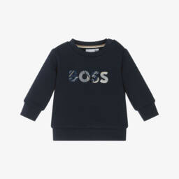Boys navy logo sweatshirt by BOSS features a sophisticated embroidered design that stands out against the rich blue background. Crafted for warmth and style, it boasts ribbed cuffs and hem for a snug fit, complete with practical shoulder button fastenings for easy dressing. Ideal for layering during the cooler autumn and winter months, this sweatshirt offers both comfort and a touch of luxury. Limited quantities available, ensuring a unique addition to any wardrobe.