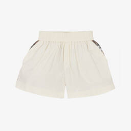Grey checked cotton shorts for boys by Burberry, featuring the iconic British brand's signature oversized check with a striking blue stripe. Crafted from soft poplin, these shorts include practical slanted pockets, a back pocket, and a secure zip and clasp fastening. The adjustable waistband offers comfort and a great fit, making them suitable for any autumn or winter occasion. Limited quantities available, don't miss the chance to add this stylish piece to your collection.
