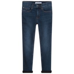 Boys washed blue relaxed jeans by Calvin Klein feature a soft denim blend, offering comfort and style. Designed in a dad jean cut, they rest comfortably at the waist with relaxed legs, making them ideal for everyday wear. The adjustable waist offers a great fit, while the silver logo button, rivets, and jacron patch add a touch of brand sophistication. Limited quantities available, lovely for those seeking a stylish yet casual look.