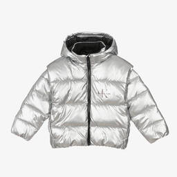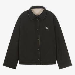 A cool black and beige reversible bomber jacket for teen boys by Calvin Klein. In lightweight ripstop, the black side is designed with contrast white branding on the popper fastening pockets and embroidered patch on one sleeve. The beige side is woven in silky soft fabric, with striking black ribbed trims, handy front pockets, and a Calvin Klein monogram graphic on the chest. The label's branding can be found on the zip for a designer finishing touch. This product is made with at least 50% recycled materials.