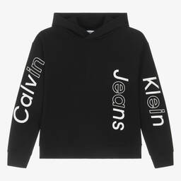Teen boys aqua blue hoodie by Calvin Klein, a stylish piece for his casual wardrobe. Featuring the brand's name boldly displayed in white on the sleeves and front, this hoodie is crafted from mid-weight cotton jersey with dropped shoulders for a relaxed fit. Limited quantities available, last chance to buy this comfortable and trendy top.