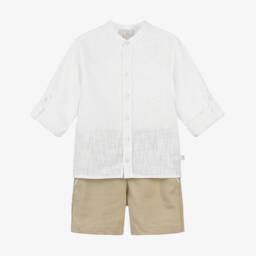 Caramelo KidsЛьняной комплект кремового и бежевого цвета для мальчиков