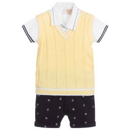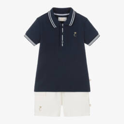 Caramelo KidsЭлегантный синий и белый хлопковый комплект для мальчиков