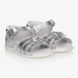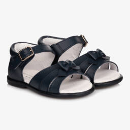 Exclusive to Childrensalon, red sandals for little girls by Children's Classics. Made from soft leather and lightly padded, the strap across the foot has a pretty red bow on the front.