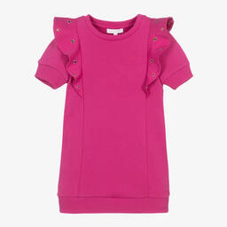 The girls navy blue eyelet dress by Chloé offers a refined touch for casual days. Crafted from soft organic cotton, this medium-weight dress features charming ruffles adorned with golden and silver eyelets that catch the light beautifully. The tonal logo embroidery on the front adds a hint of sophisticated branding. Limited quantities available, making it a last chance to buy this stylish piece.