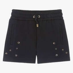 Teen girls pink cotton jersey shorts by Chloé are crafted in soft organic cotton, featuring the brand's iconic gold and silver eyelet detailing on the front. These shorts come with an elasticated drawstring waist for a comfortable fit, slanted front pockets, and subtle tonal Chloé embroidery on the back. Limited quantities available, making it a last chance to buy this luxurious yet practical garment.