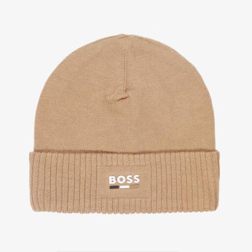 BOSSБежевая мягкая хлопковая шапка для мальчиков