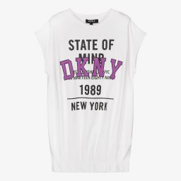 Designed for teen girls by DKNY, a black organic cotton dress with a black and white DKNY State of Mind print. Made from soft and stretchy jersey, this lightweight dress has short capped sleeves and an elasticated hemline, creating a casual, relaxed look.