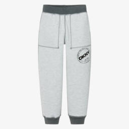 Great for laidback looks, a pair of muted lilac pink joggers for teen boys and girls, by DKNY. A tonal logo can be found wrapped around one leg for an edgy, branded look. They have a relaxed drawstring waist for casual style and comfort, and are made in soft cotton sweatshirt jersey.