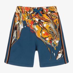 Burgundy red cotton shorts for boys by luxury Italian brand Dolce & Gabbana, with a black logo badge on one leg to add a designer touch to casual days. Made in soft, stretchy, mid-weight sweatshirt jersey, they have useful, concealed side pockets and a back pocket. The ribbed, elasticated waistband has a drawstring for a comfortable fit.