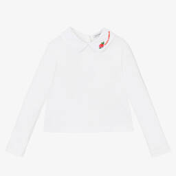 Girls can look like mum in this pretty blouse by Dolce & Gabbana, with its pretty Mini-me black and red Roselline print. The stretchy and lightweight jersey will feel luxuriously soft against the skin and it has a concealed popper on the front hidden by the pretty red lace collar and decorative tie.
