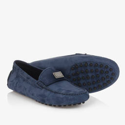 Traditionally styled, light beige moccasin shoes for teen boys by luxury brand Dolce & Gabbana, made in beautifully soft suede leather. These classic slip-on shoes have a silver metal logo plaque on the front for instant designer impact. They are lined in smooth leather for comfort and are detailed with complementing stitching and signature pebble grips on the soles.
