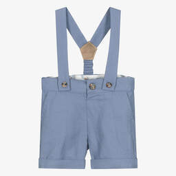 Boys beige cotton linen shorts by Dr. Kid offer a classic and stylish look for little ones. Crafted from a soft blend of cotton and linen, these shorts feature slanted front pockets, fold-up hems, and a faux back pocket. Matching braces attach with buttons, ensuring they stay in place. Larger sizes come with a button and zip fastening on an adjustable waistband, while smaller sizes secure with a button. Last chance to buy as quantities are limited!