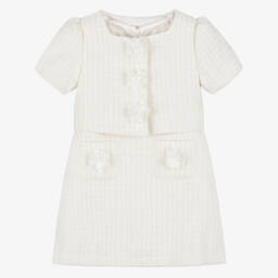 Abuela TataКремовый комплект с платьем с вышитыми цветами для девочек