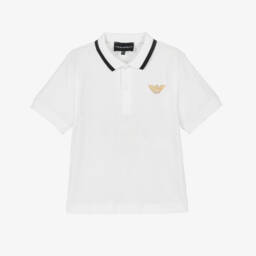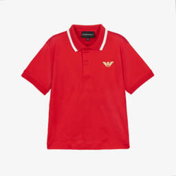 The navy CNY polo shirt for boys by Emporio Armani features an elegant embroidered gold Eagle logo on the chest. Crafted from a luxurious blend of lyocell and cotton, this piece is part of the brand's exclusive Lunar New Year collection. The shirt includes a sophisticated ribbed collar with a crisp white trim and branded button fastenings. Ideal for spring and summer, this polo offers comfort and style, making it a perfect choice for special occasions. Limited quantities available.