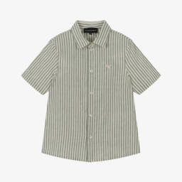 Dark blue linen shirt for boys by Emporio Armani offers a stylish and comfortable choice for warm days. Featuring a revere collar and lightweight woven fabric, the shirt is embellished with the brand's iconic logo on the chest pocket. Button fastenings make it easy to wear, providing both elegance and practicality. Perfect for casual outings, this shirt is a versatile wardrobe staple. Limited quantities available, ensuring a unique addition to any collection.