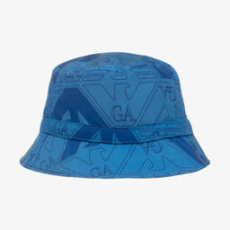 Boys white eagle print bucket hat by Emporio Armani is patterned with the iconic Eagle logo in green and blue. Made from silky smooth fabric with a soft mesh lining, it features a toggle-adjustable drawstring in neon green for a stylish finish and comfortable fit. Limited quantities available, making this a last chance to buy.