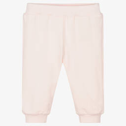 Pale blue joggers for baby boys and girls by luxury Italian brand Fendi. One leg has the Fendi Roma logo embroidered in white by the ribbed cuff. Casual and comfortable, they are made in soft cotton jersey with an elasticated waistband for easy pull-on.