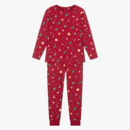 Navy blue festive pyjamas for older boys by NAME IT, patterned with playful Christmas-themed motifs. Made in soft cotton jersey, this cosy, long-sleeved style has ribbed trims and an elasticated waistband for a comfortable fit.