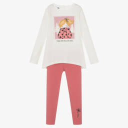 Pink leggings set by iDO features a long-sleeved top and leggings. The top has a charming girl graphic and button fastenings on the back. The leggings have an elasticated waist for easy wear.