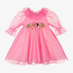 Beautiful red chiffon dress for little girls by Graci, exclusive to Childrensalon. Fully lined for added comfort, it has a lightly elasticated neckline and sleeve cuffs creating feminine frills. The skirt flares out from the waist for a lovely drape and free movement. It comes with a 3D flower brooch which allows two alternative finishes and the exposed zip on the back is embellished with a rhinestone for a touch of sparkle.