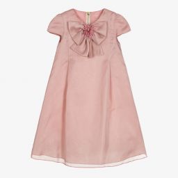 From Spanish brand Graci, a gorgeous special occasion dress for girls in burgundy red. Made in sheer organza and lined in silky satin, it has capped sleeves and a beautiful bow with a removable flower brooch on the front. There is tulle-trimmed polycotton lining under the skirt, with an exposed gold zip fastening on the back.