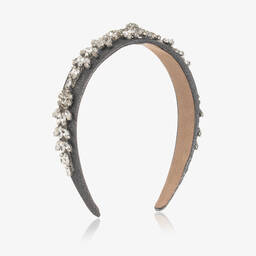 Girls red crystal hairband by Spanish brand Graci with a shimmering gold effect. Handmade with sparkling crystals forming a floral design, this elegant burgundy red hairband adds a lovely finishing touch to any special outfit. The flexible, fabric-covered band has a brushed underside to ensure a secure fit and prevent slipping. Last chance to buy, with limited quantities available, perfect for ages 4-14 years.