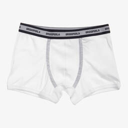 Grigio Perla boys navy blue boxer shorts made from soft cotton jersey with a stretchy grey waistband and trims.