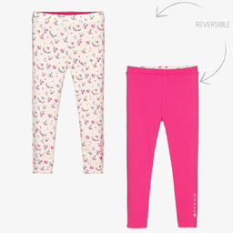 Reversible black and grey leggings for girls, by Guess. Made in soft organic cotton jersey, one side has a lovely white polka dot pattern all-over, and the other grey side has the designer's logo print on one leg.
