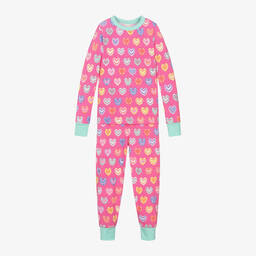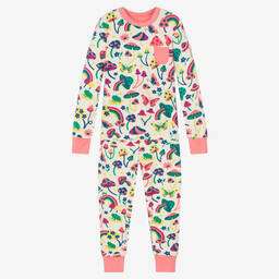 Boys snug fitting pyjamas by Hatley, made in soft and stretchy organic cotton jersey. The sleeves and trousers have an orange and black tiger print on a grey background. The top has a tiger applique on a grey and ivory background.