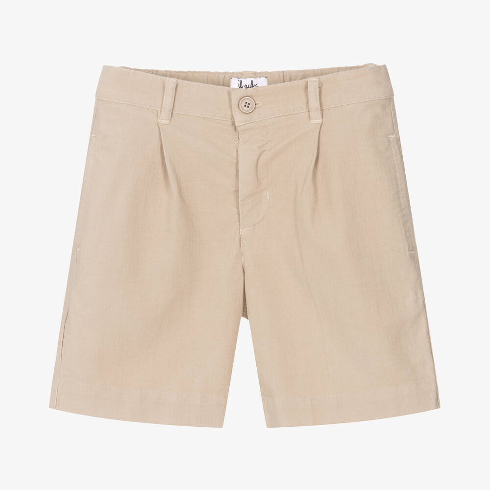 Boys beige cotton shorts by Il Gufo offer comfort and style with an added stretch. Crafted from high-quality woven fabric, these shorts feature side seam pockets, a back pocket, and an adjustable waistband for a perfect fit. Ideal for casual wear, they fasten with a button and zip for easy dressing. Limited quantities available, last chance to buy these versatile shorts.