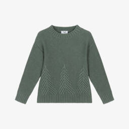 A boys green wool striped jumper by Il Gufo offers a cosy touch with its pure Virgin wool composition. Featuring muted stripes and contrasting beige ribbed trims, this lightweight knit combines style with comfort. Easy to wear, it's lovely for layering during cooler months. Limited quantities available, so don't miss out on this exclusive piece.