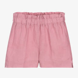 Lovely white linen shorts for girls by Il Gufo, ideal for looking chic on warmer, sunny days. They have a wide leg style for a relaxed fit, and elasticated gathered waist for comfort and style.