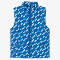 For teen boys and girls, a black puffer gilet by KENZO KIDS, with the brand's signature logo pattern in white. Down padded for superior warmth, it has a luxurious silky smooth feel, useful front pockets and an exposed zip fastening with a branded pull.
