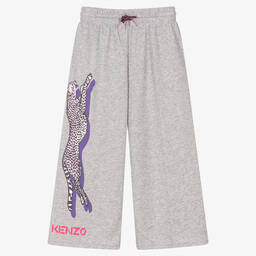 Teen boys grey cotton joggers by KENZO KIDS, featuring signature navy blue branding on the back pocket. Crafted from mid-weight cotton jersey, these joggers are ideal for relaxed days and offer great ease of movement. Key features include elasticated cuffs, slanted front pockets, and ribbed detailing on the stretchy waistband. The drawstring ties, branded on the caps, allow for an adjustable fit. Limited quantities available, last chance to buy!
