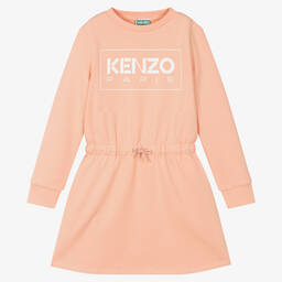 Grey marl sweatshirt dress for teen girls by French label KENZO KIDS. Made in a mid-weight cotton jersey blend, this recognisable piece is stamped with a red logo print on the front for instant brand appeal. Drawstring ties can be adjusted on the waist to secure a comfortable fit. The side seam pockets and ribbed trims add to the casual branded look.