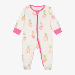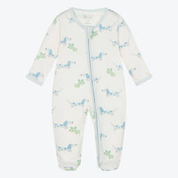 Girls ivory seahorse babygrow by Kissy Love, crafted in super soft Pima cotton jersey. Adorned with pastel-coloured seahorses and sweet flowers, it features a smooth zip fastening for easy dressing and changing. Protective fold-over scratch mitts are included on sizes up to 3 months. Limited quantities available – last chance to buy!