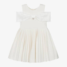 The ivory bow pleated dress by Lapin House is a charming addition to any girl's wardrobe. This delightful piece features a large satin bow and elegant pleats, creating a sophisticated silhouette perfect for special occasions. Crafted with attention to detail, the dress ensures comfort and style throughout the autumn and winter months. Available in limited quantities, it's the last chance to buy this exquisite dress and make your little one's outfit truly memorable.