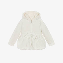 The girls scarlet wool bow coat by Lapin House is a charming addition to any wardrobe. Crafted from a soft felted wool-blend, it features delightful fixed bows and pleats on the lower panel, complemented by a ruffled collar. A detachable hood and lightweight cotton lining add extra comfort and is lovely for autumn and winter outings. This coat is available in limited quantities, making it a last chance to buy.