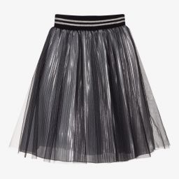 Pink skirt for girls by Lapin House, made in soft faux fur, with a cotton lining. The silky smooth hem is lightly padded, with tulle and bow trims. It has a ribbed, elasticated waistband, with a sparkly white logo print.