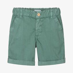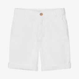 Boys beige cotton chino shorts by Laranjinha are crafted from lightweight cotton twill with a subtly washed finish. These smart-casual shorts feature slanted front pockets, two back pockets, and braided trims on the turn-up cuffs. Fastened with a branded wooden button and zip, the adjustable waistband ensures a comfortable fit. Limited quantities available, making it your last chance to buy these stylish shorts.