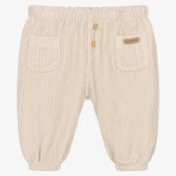 Girls corduroy beige trousers by Laranjinha offer a touch of elegance with their soft cotton-blend jumbo corduroy fabric. Designed with a wide leg and a comfy elasticated waist, these trousers feature charming faux tortoiseshell buttons. Suitable for autumn and winter outings, they provide warmth and style. Limited quantities available, so seize the opportunity to add this classic piece to your wardrobe.